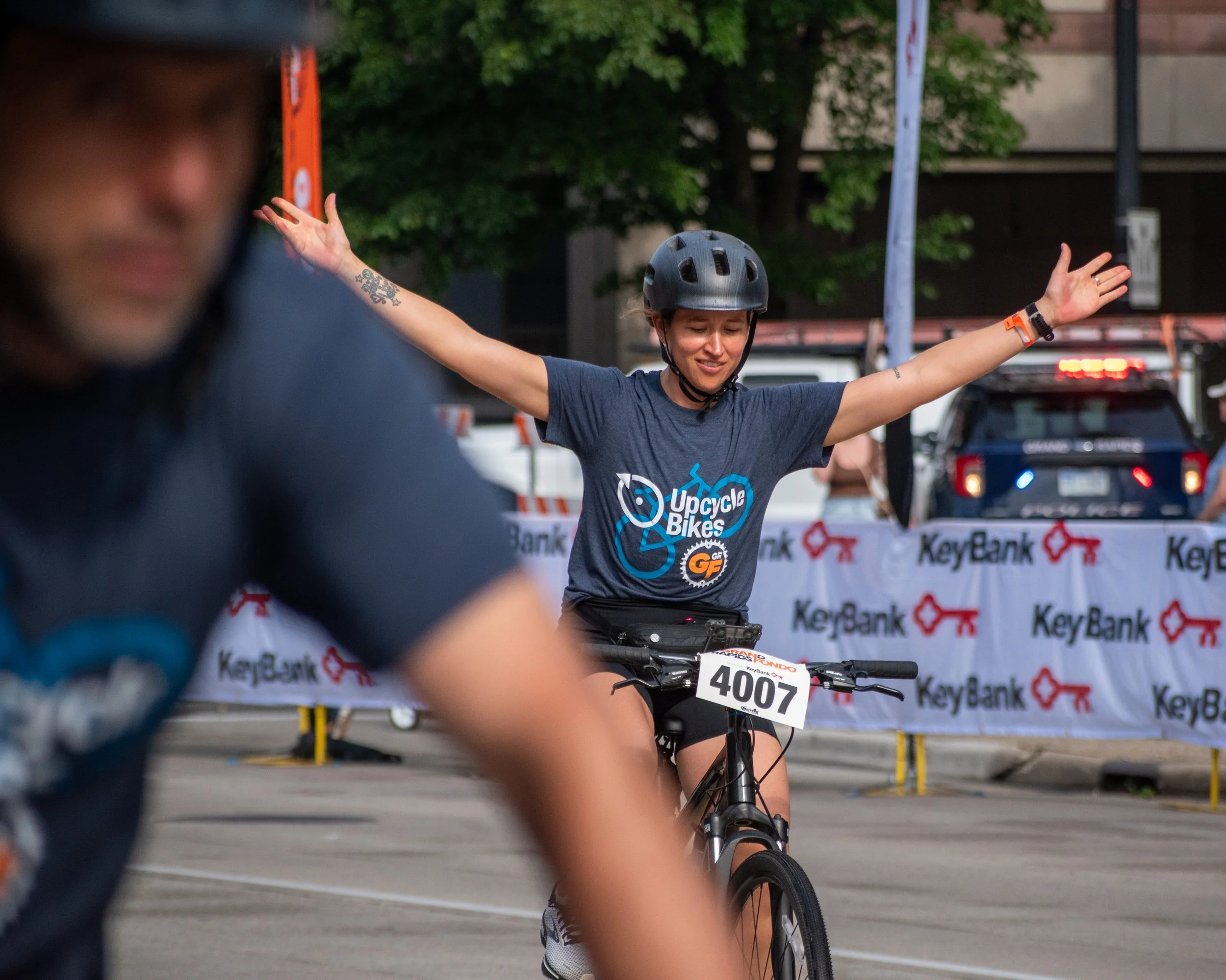We participate annually in Grand Rapids’ KeyBank Gran Fondo, bringing together Upcycle Bikes staff, board, volunteers, distribution partner staff, bike recipients, and supporters to ride as one team. Upcycle Bikes provides a team captain, organization, event registration, and team shirts; bikes and helmets are also available if needed.